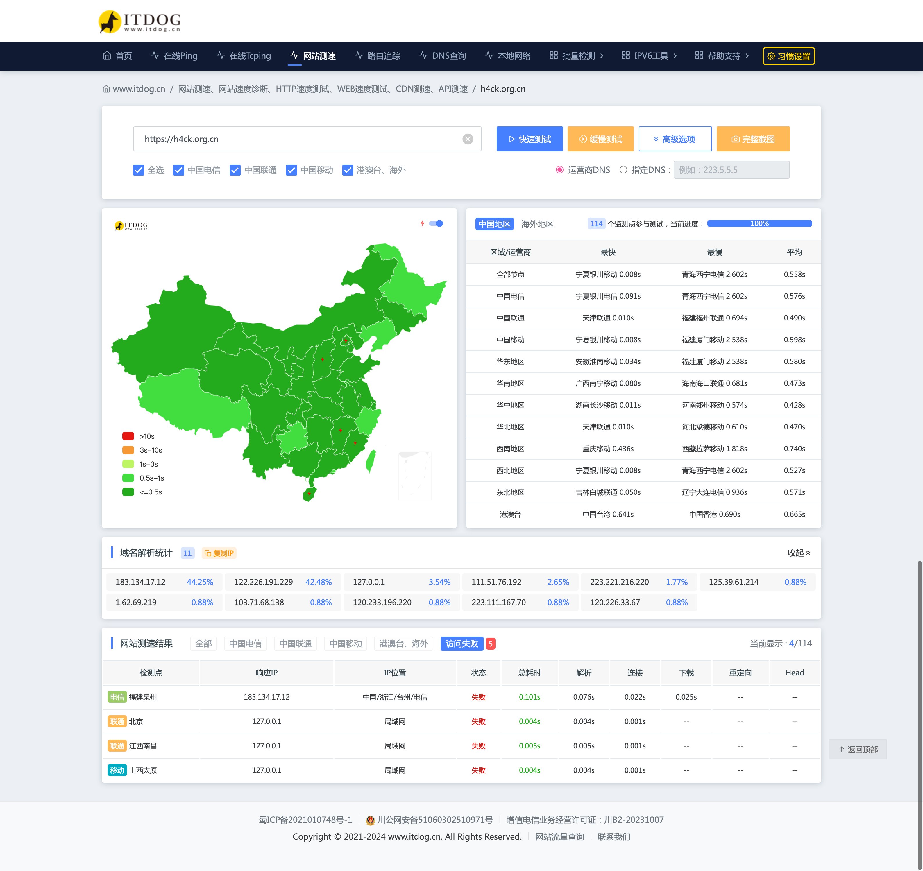 昨天的时候测速发现一部分地区被劫持了,返回了 127 的地址: