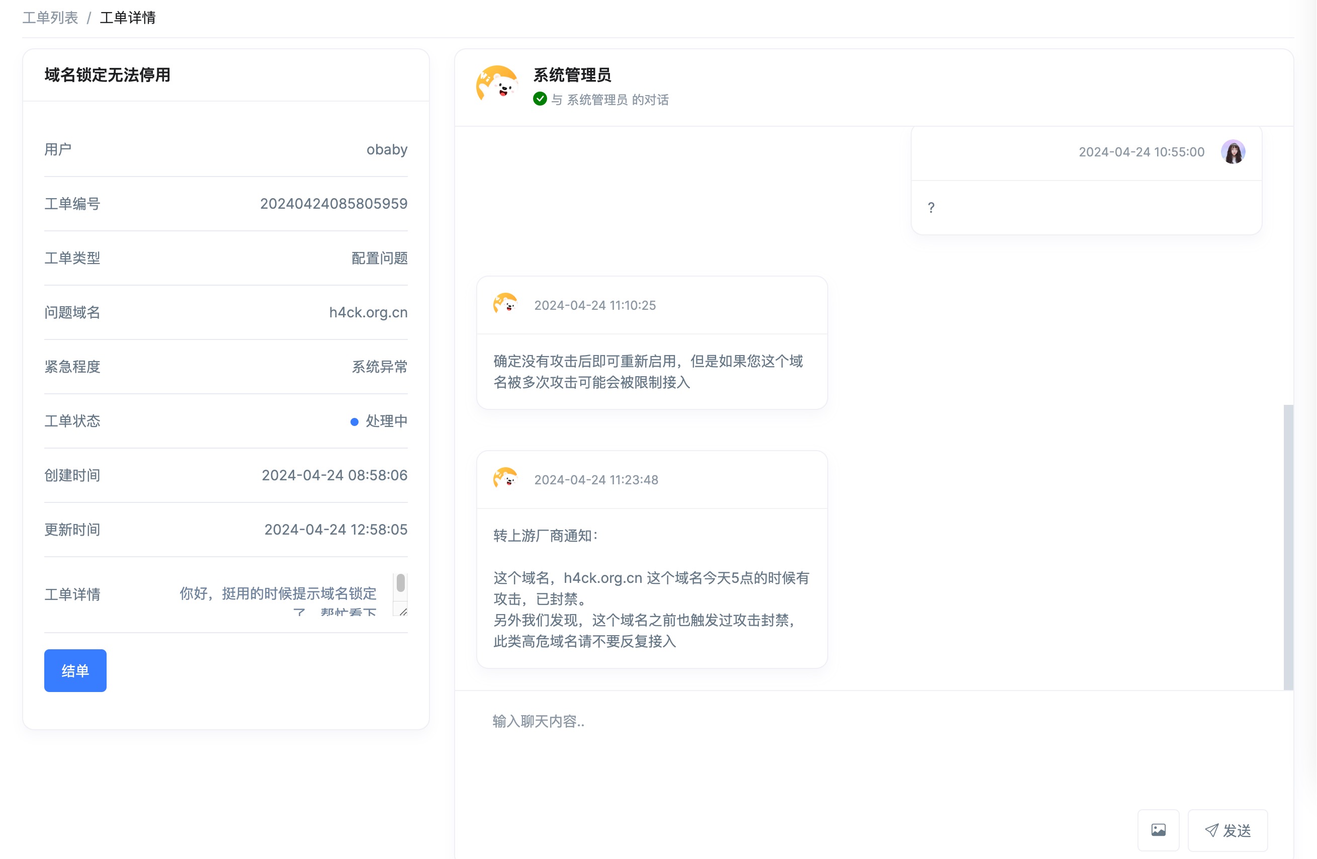 不要反复接入,的确是个问题,看起来一个域名的攻击已经影响到cdn 节点了,那么不让接入自然是最简单的办法了。上午创建工单的时候顺便问了下访问日志的情况,无畏也给提供了,3.84g 的文件,现在没流量也不想下载了,至于分析,也没什么兴趣了。就先酱紫把。